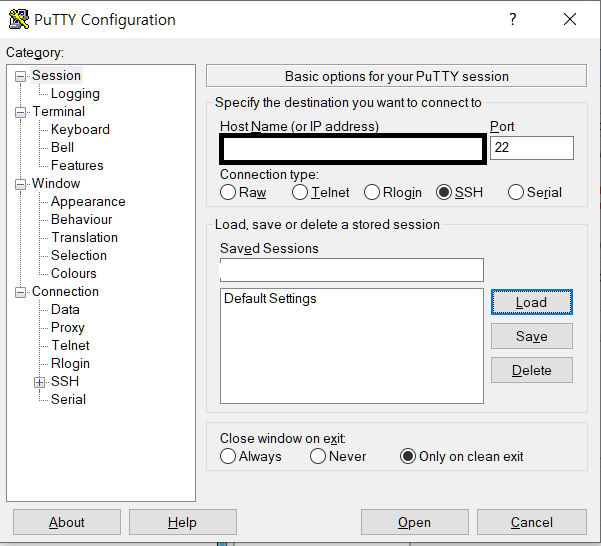 이 후 putty를 실행할때 그 것을 선택한 뒤 load버튼을 누르고 Open을 누르면 자동으로 저장된 값들로 실행이 됩니다.