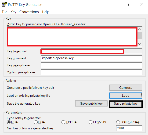 1)PuTTYgen로 키 생성