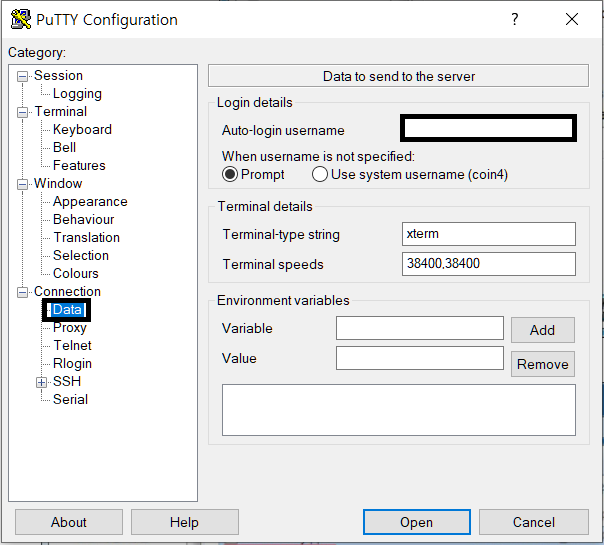 이후 접속을 시도할 때 username과 IP주소를 계속 입력하기 싫으시다면 좌측 메뉴의 Data메뉴를 선택한 뒤 Auto-login username칸에 ubuntu를 입력하신 뒤,