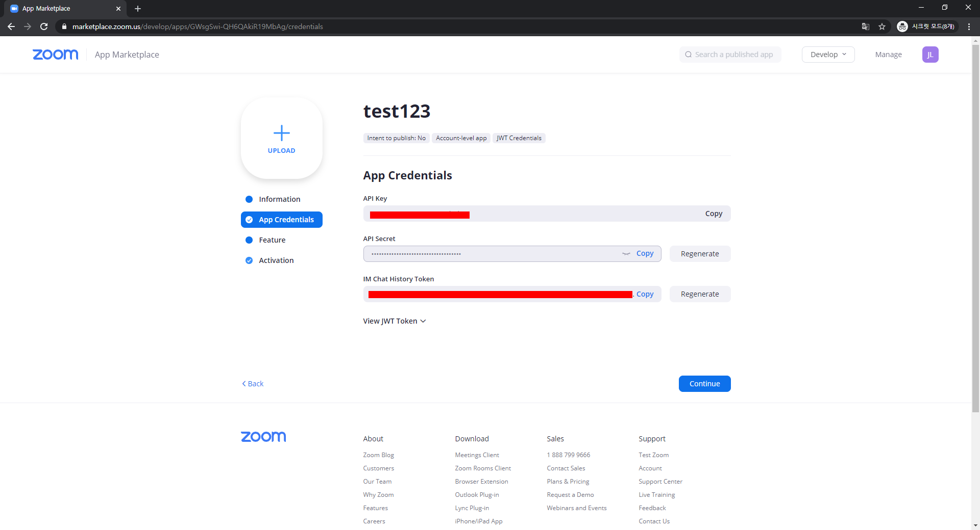sdk에서 요구하는 건 api key와 api secret인데, sdk앱은 sdk key, 와 sdk secret을 제공하여 sdk앱을 만들어 봤자 앞으로 진행이 안된다....