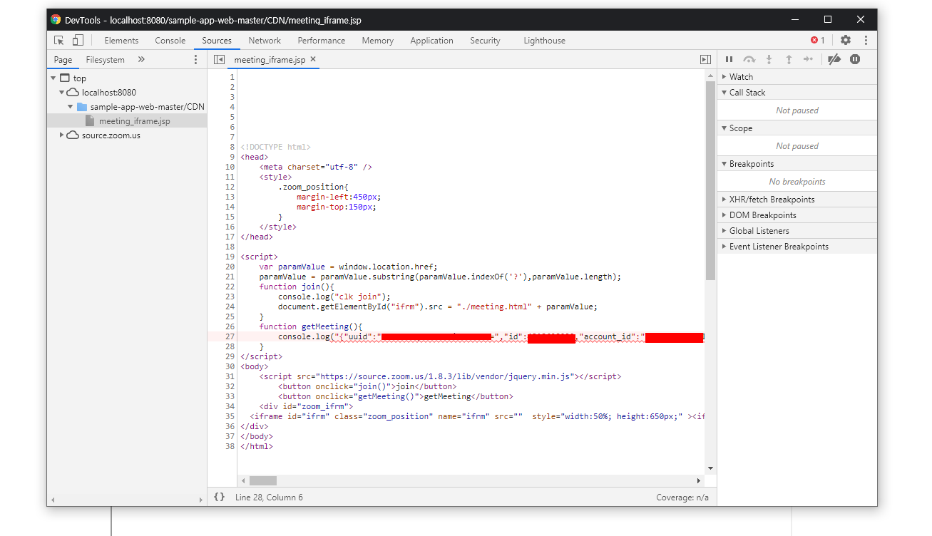 하지만 CORS 정책에 의해 막히고 말았는데, zoom developer forum사이트에서 찾은 방법을 한 번 적용해서 해결을 해보도록 하자.